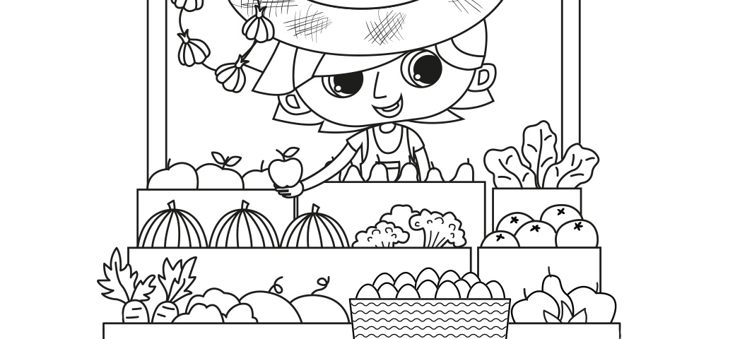 Prends tes crayons et tes feutres pour remplir ce coloriage spécial fruits et légumes du marché !